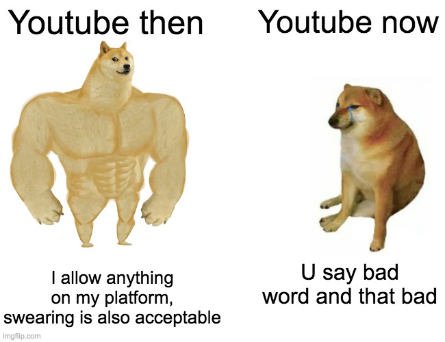 If you find this site serviceableness, please support us by sharing this posts to your preference social media accounts like Facebook, Instagram and so on or you can also Save this blog page with the title Youtube Then Vs Now Memes by using Ctrl + D for units a laptop with a Windows operating system or Command + D for laptops with an Apple operating system. If you use a smartphone, you can also use the drawer menu of the browser you are using. Whether it's a Windows, Mac, iOS or Android operating system, you will still be able to bookmark this website.